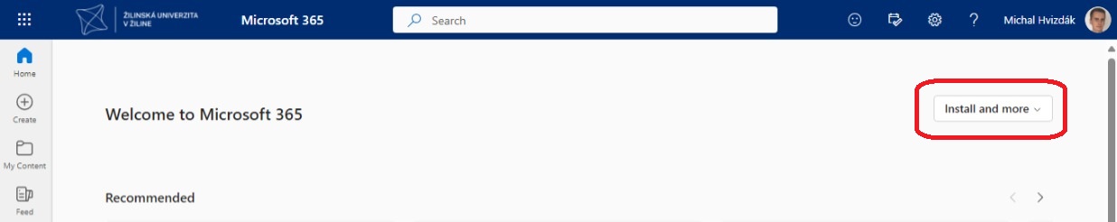 Vľavo hore kliknite na Nainštalujte si Office.