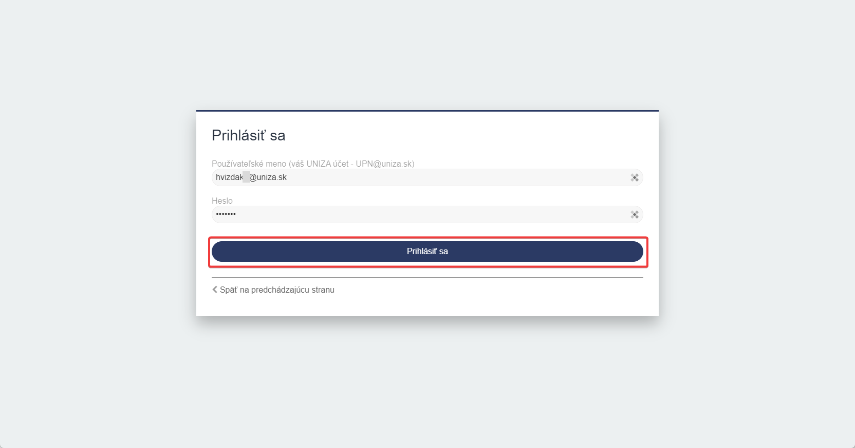 Na prihlasovacej obrazovke zadajte vaše prihlasovacie údaje, ktoré používate na UNIZA.